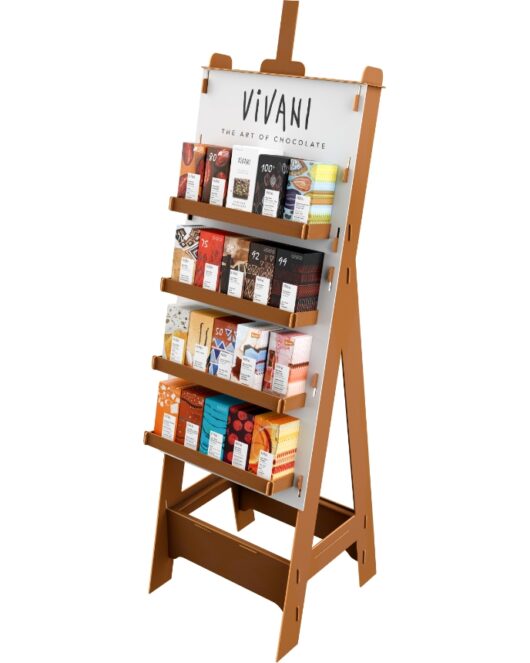 Ein absoluter Hingucker: Die VIVANI ‚Chocolate Gallery‘ im Staffelei-Look setzt farbgewaltige Akzente am POS.